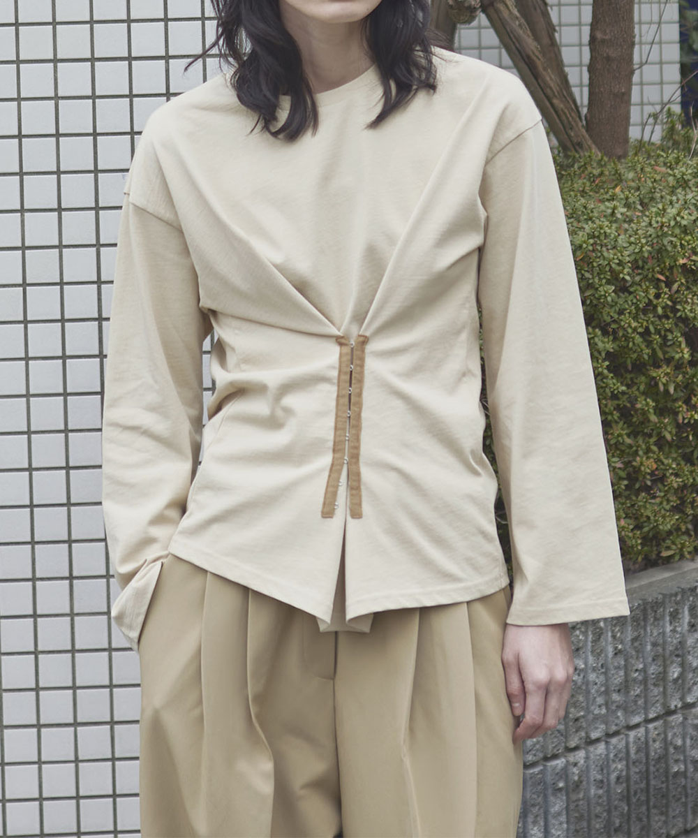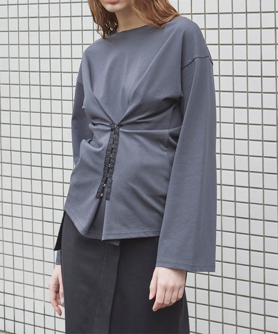 コルセットのようなホックディテールがアクセントになったプルオーバー。