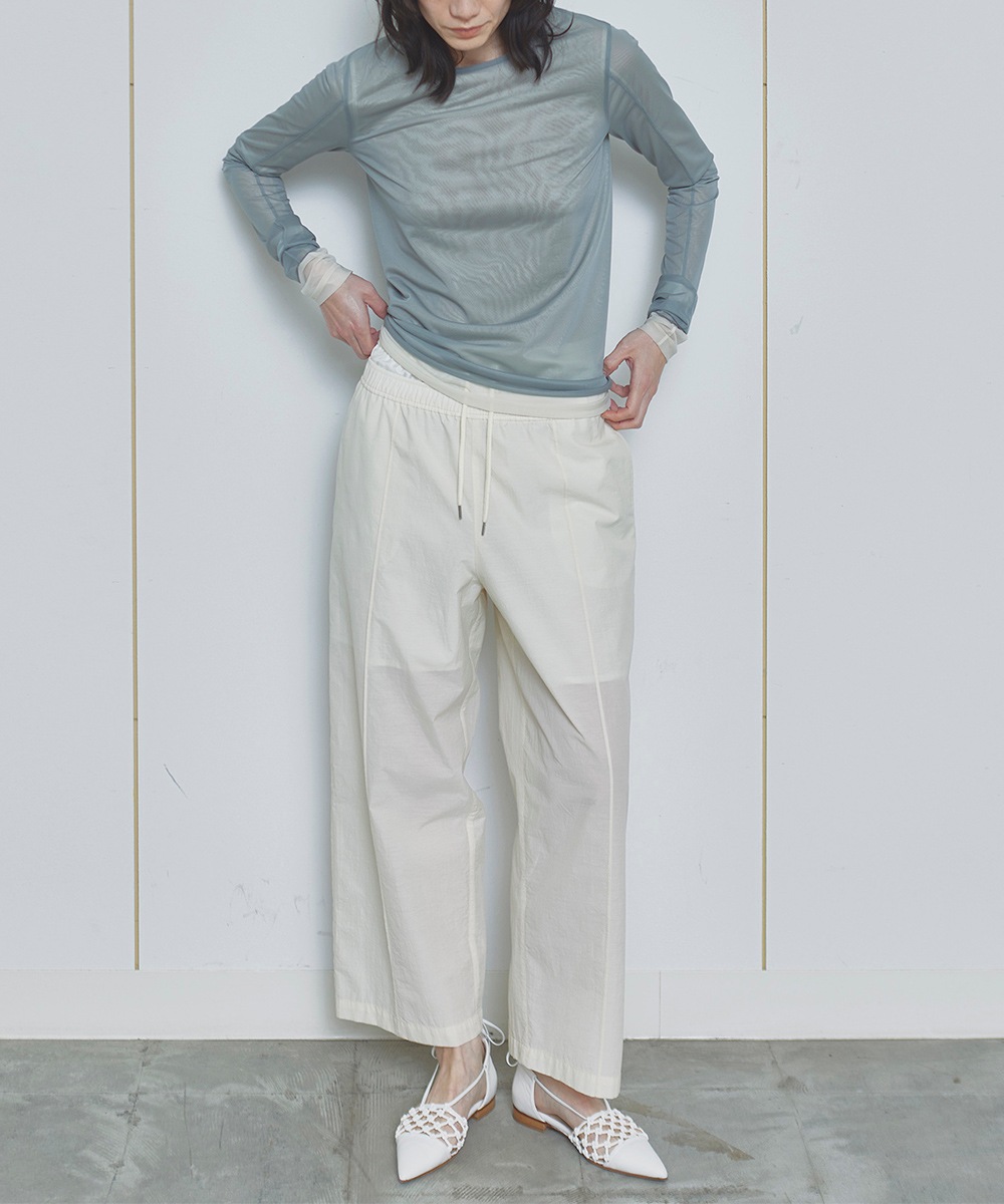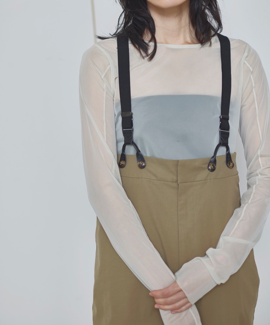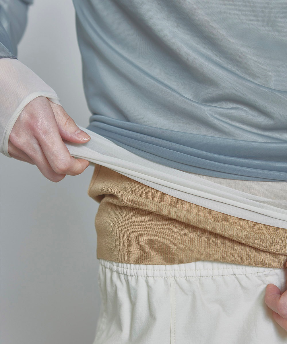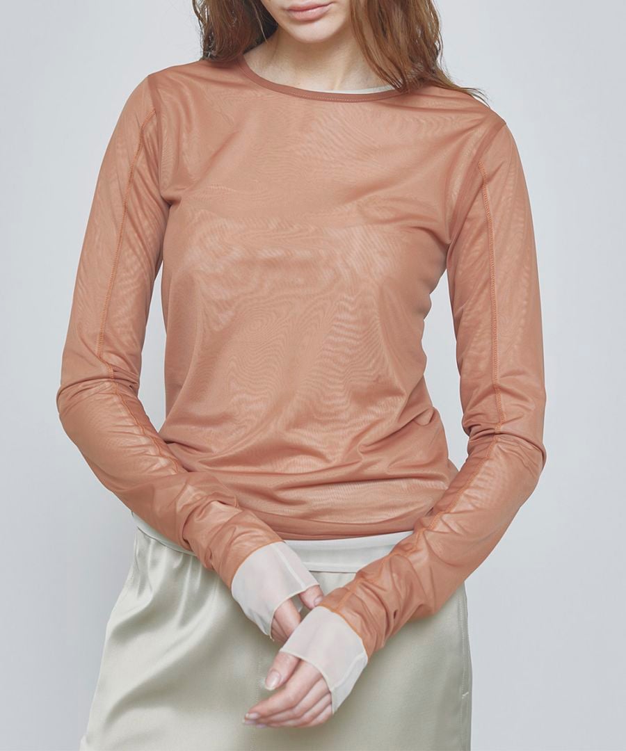 美しいカラーリングのシアーロングスリーブトップス