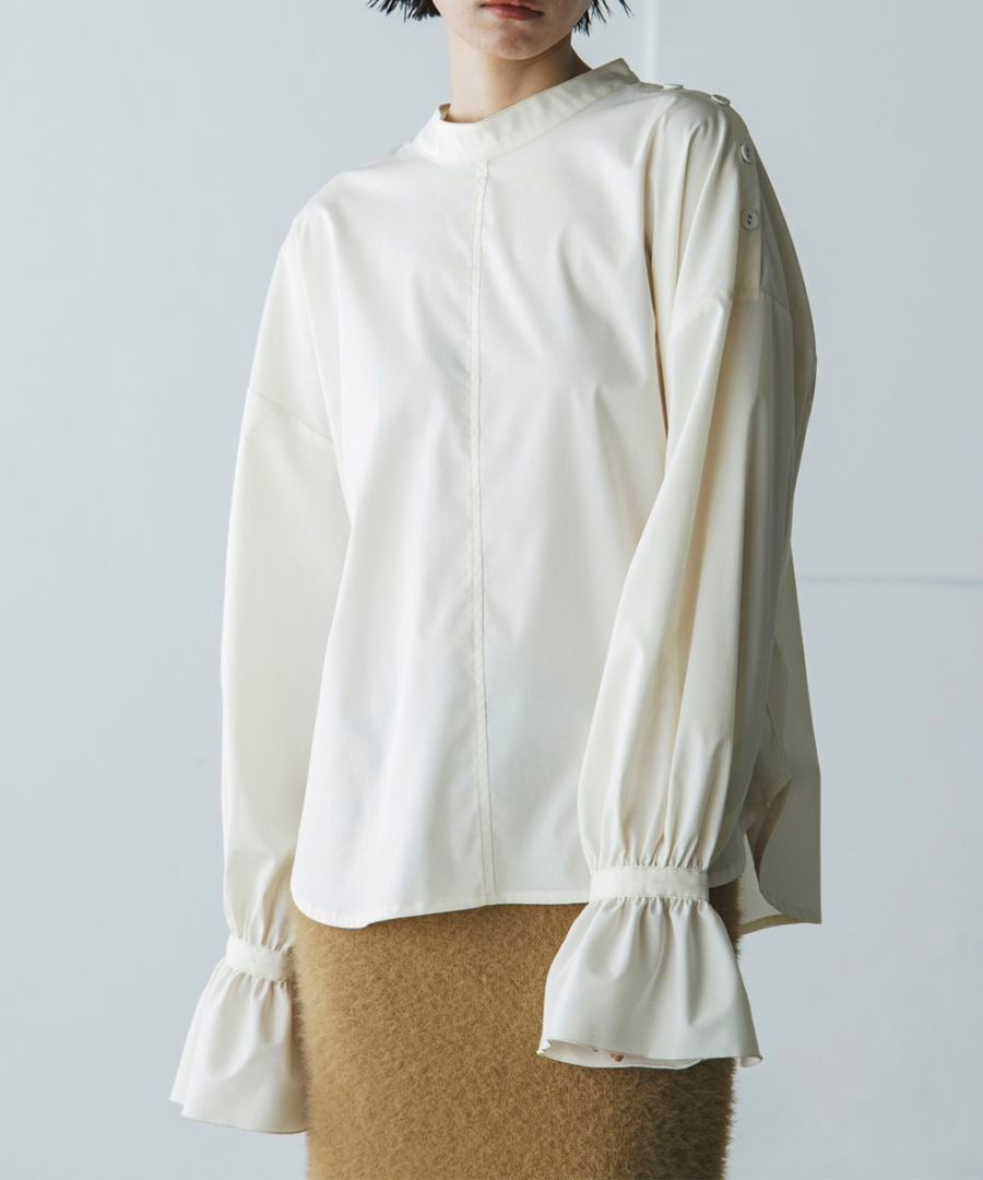 ウールを混紡したギャバジン素材。さらりとした滑らかな肌触りで、秋から春まで着て頂ける素材感。
