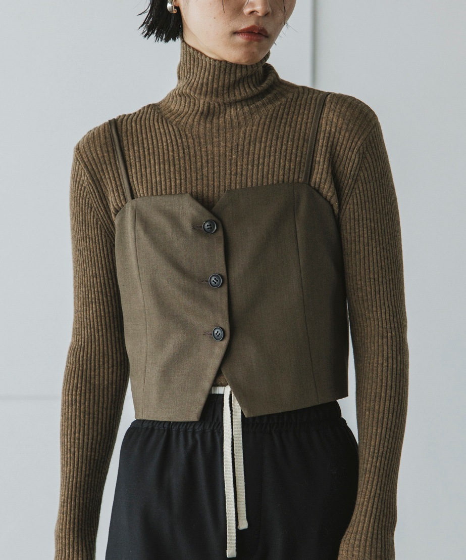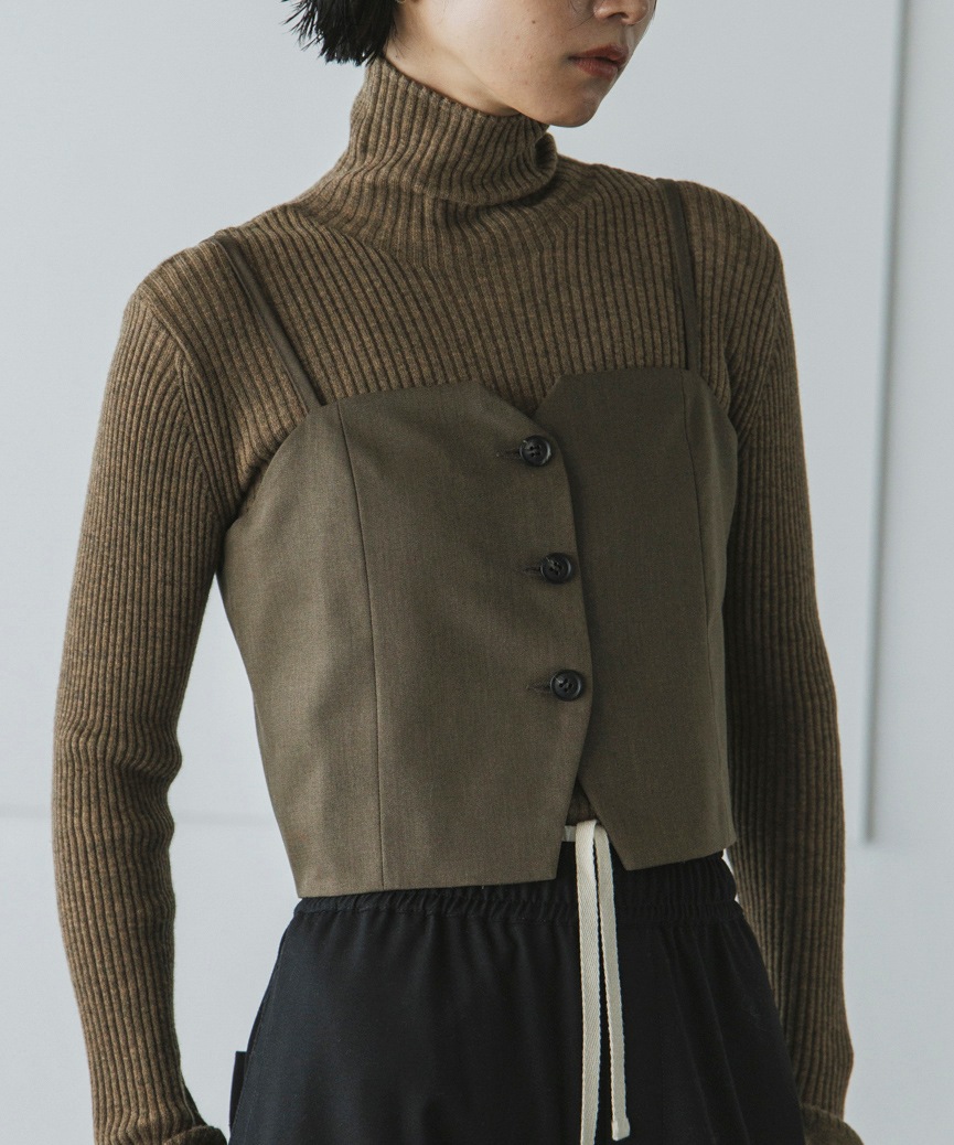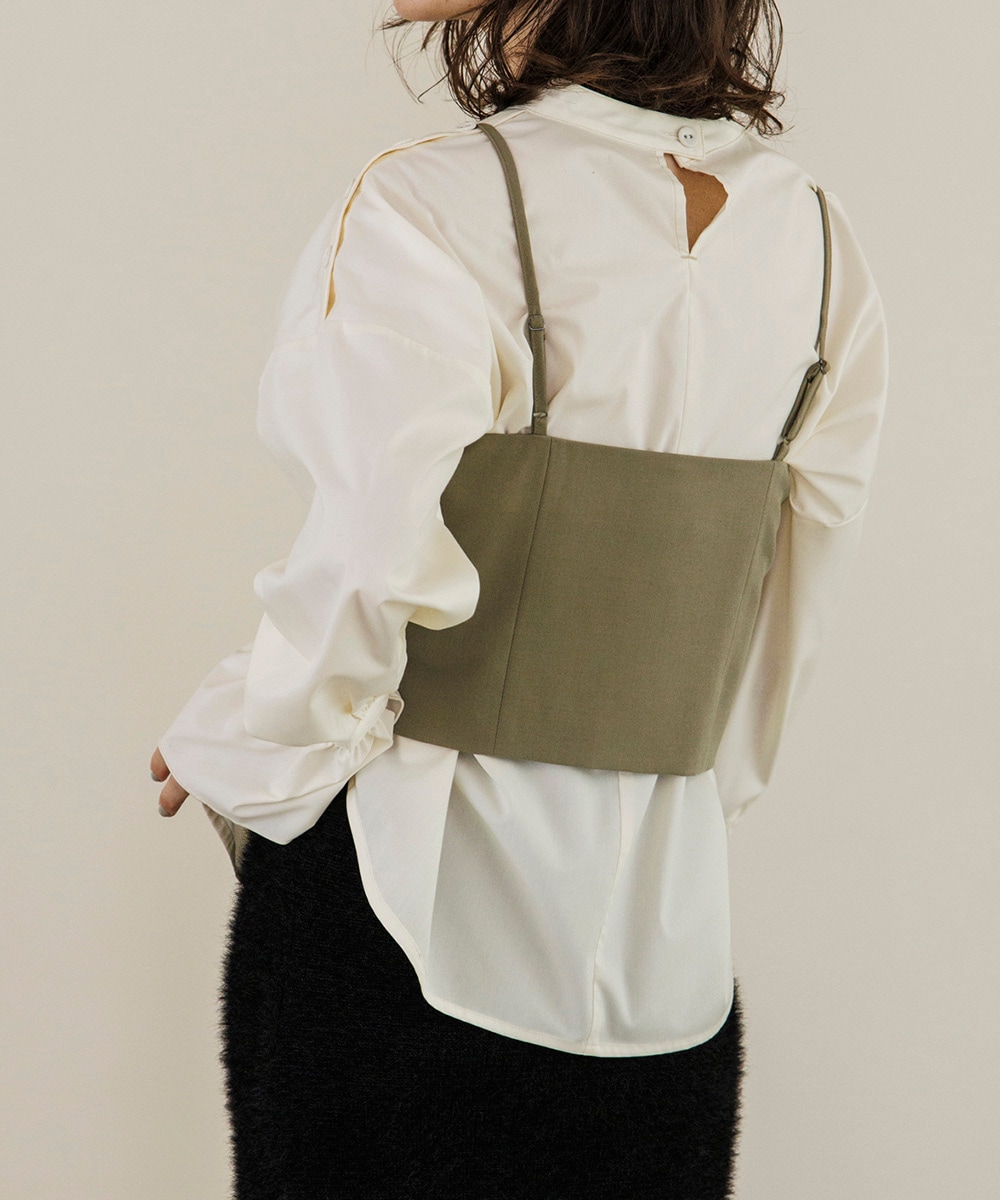 様々なコーディネートに合わせやすい程よくコンパクトなサイジングのビスチェ