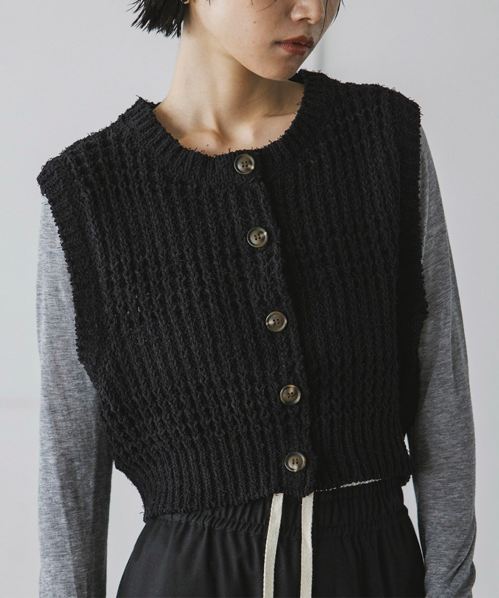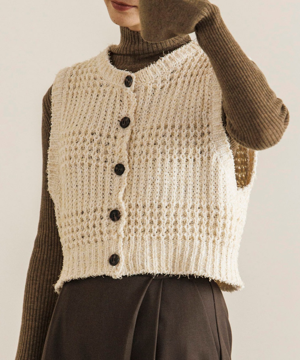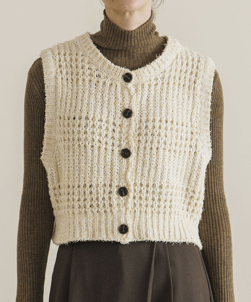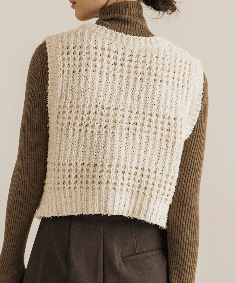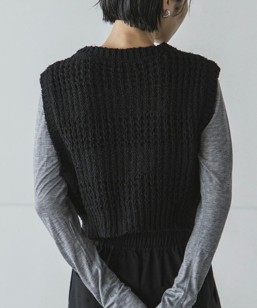 表情のあるニット素材がポイントのコンパクトニットベスト