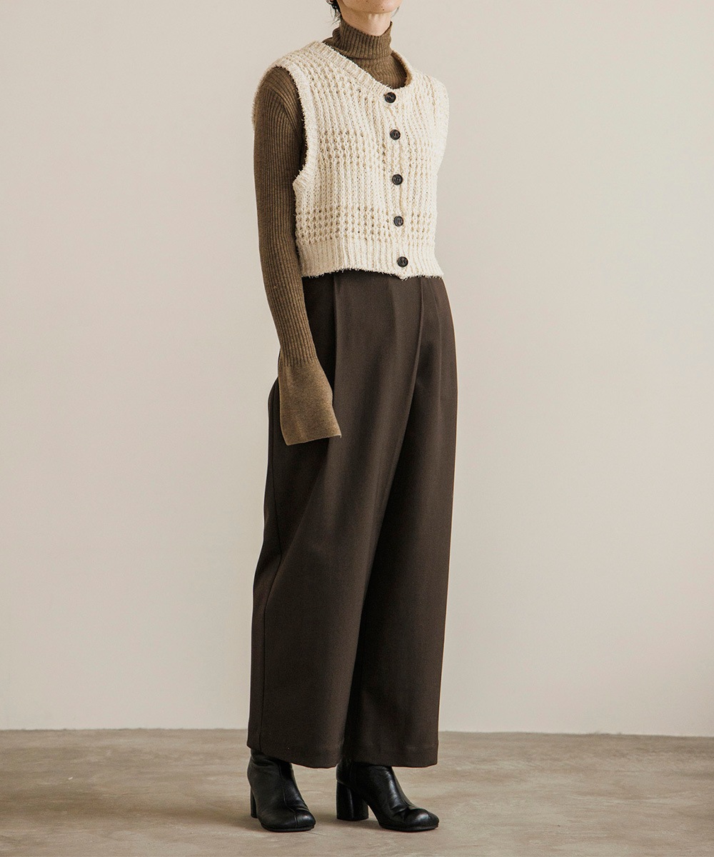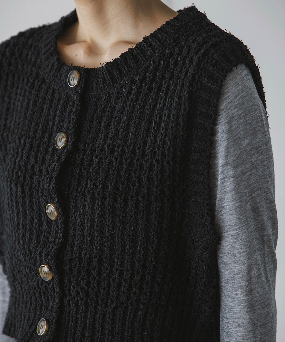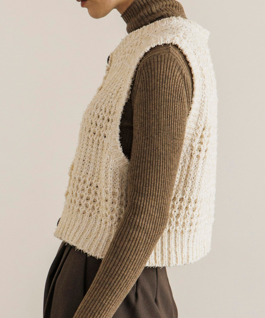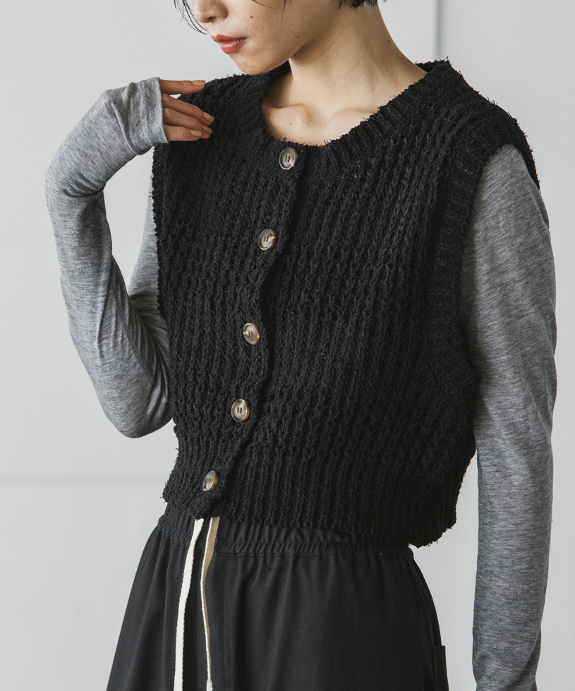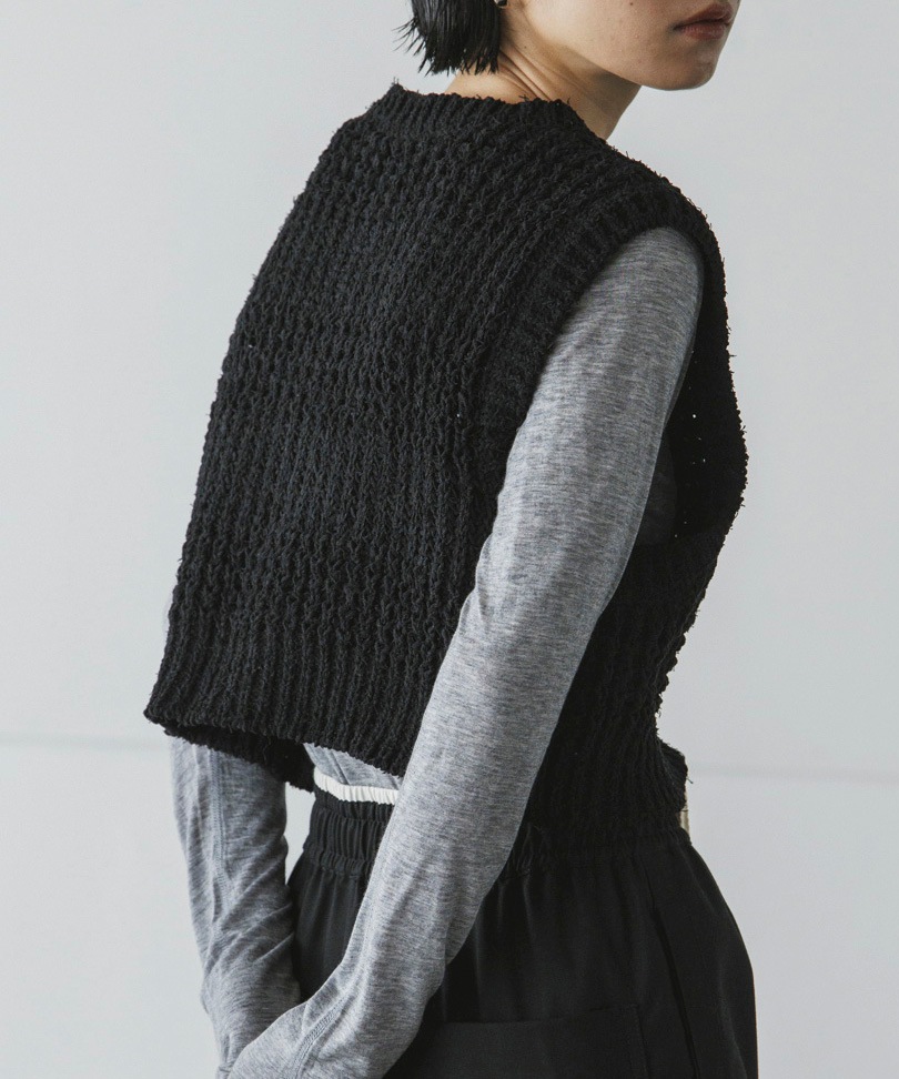 表情のあるニット素材がポイントのコンパクトニットベスト