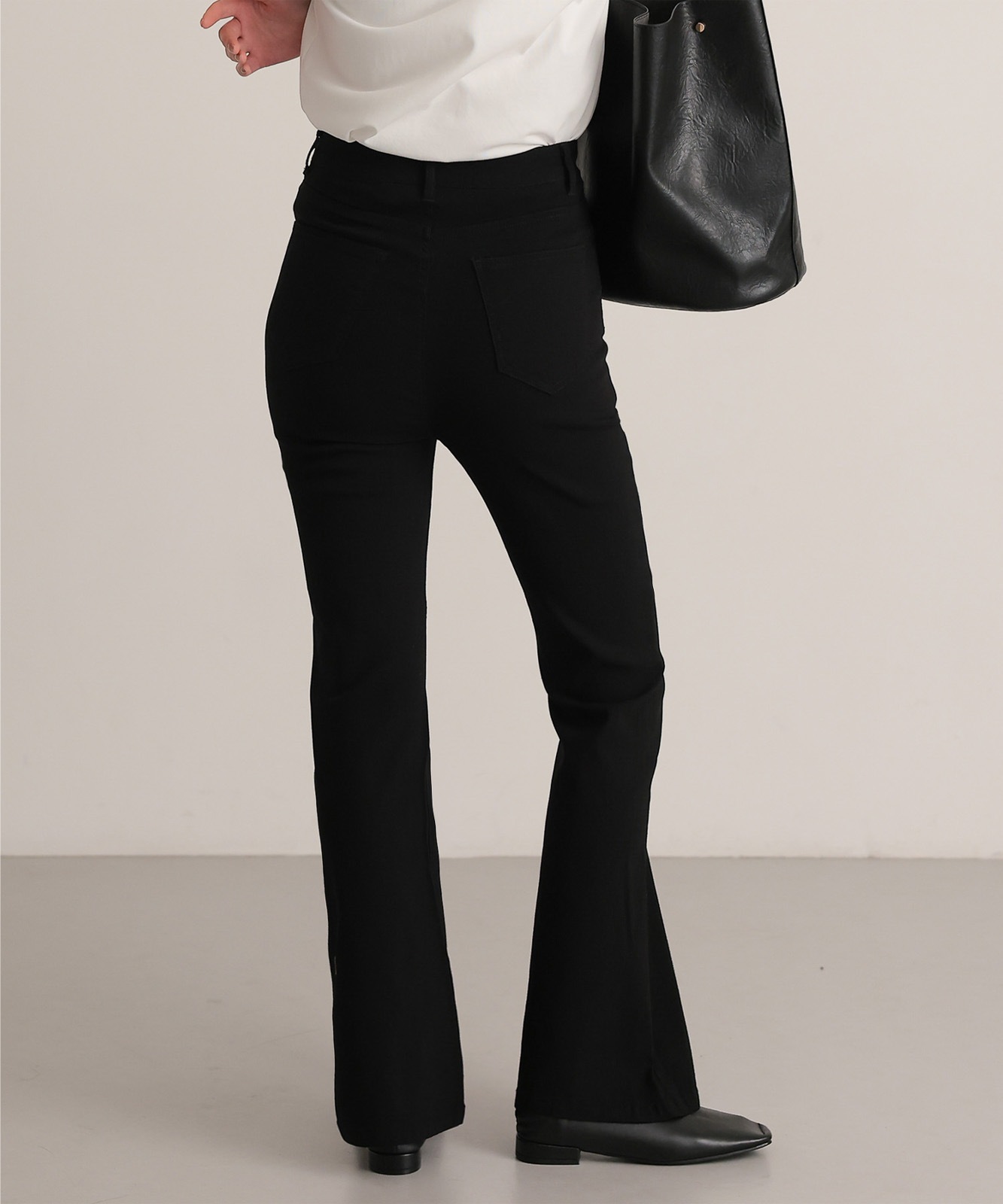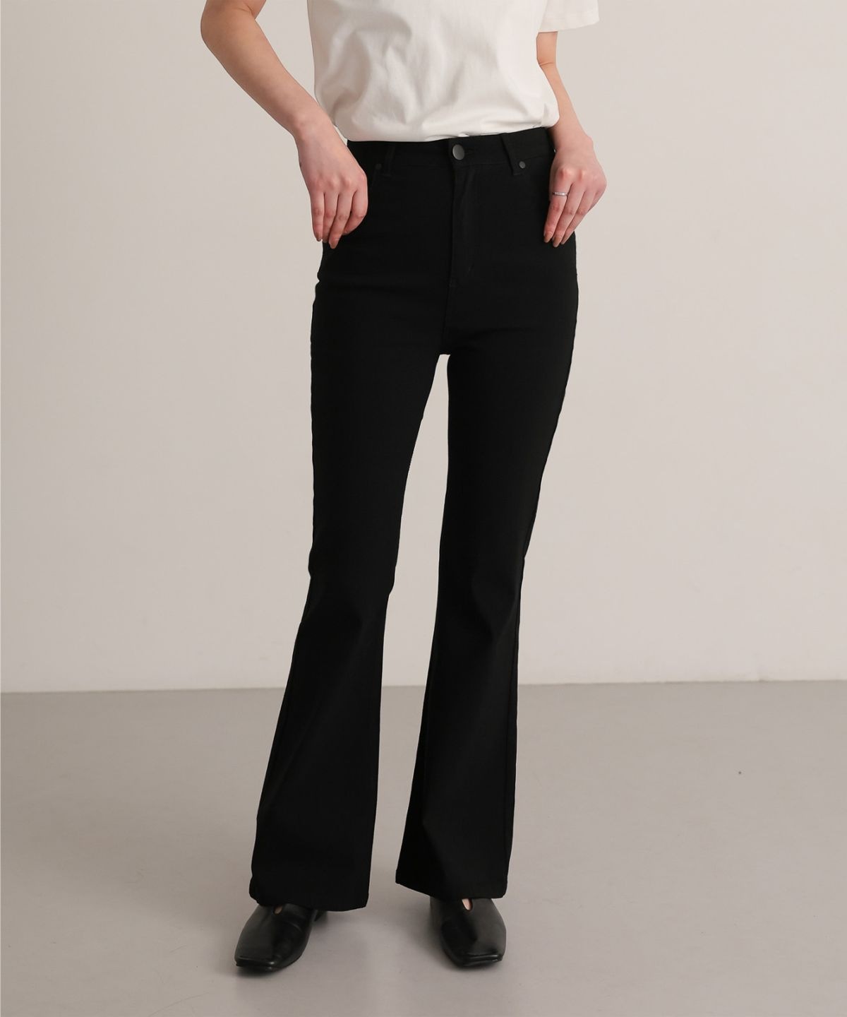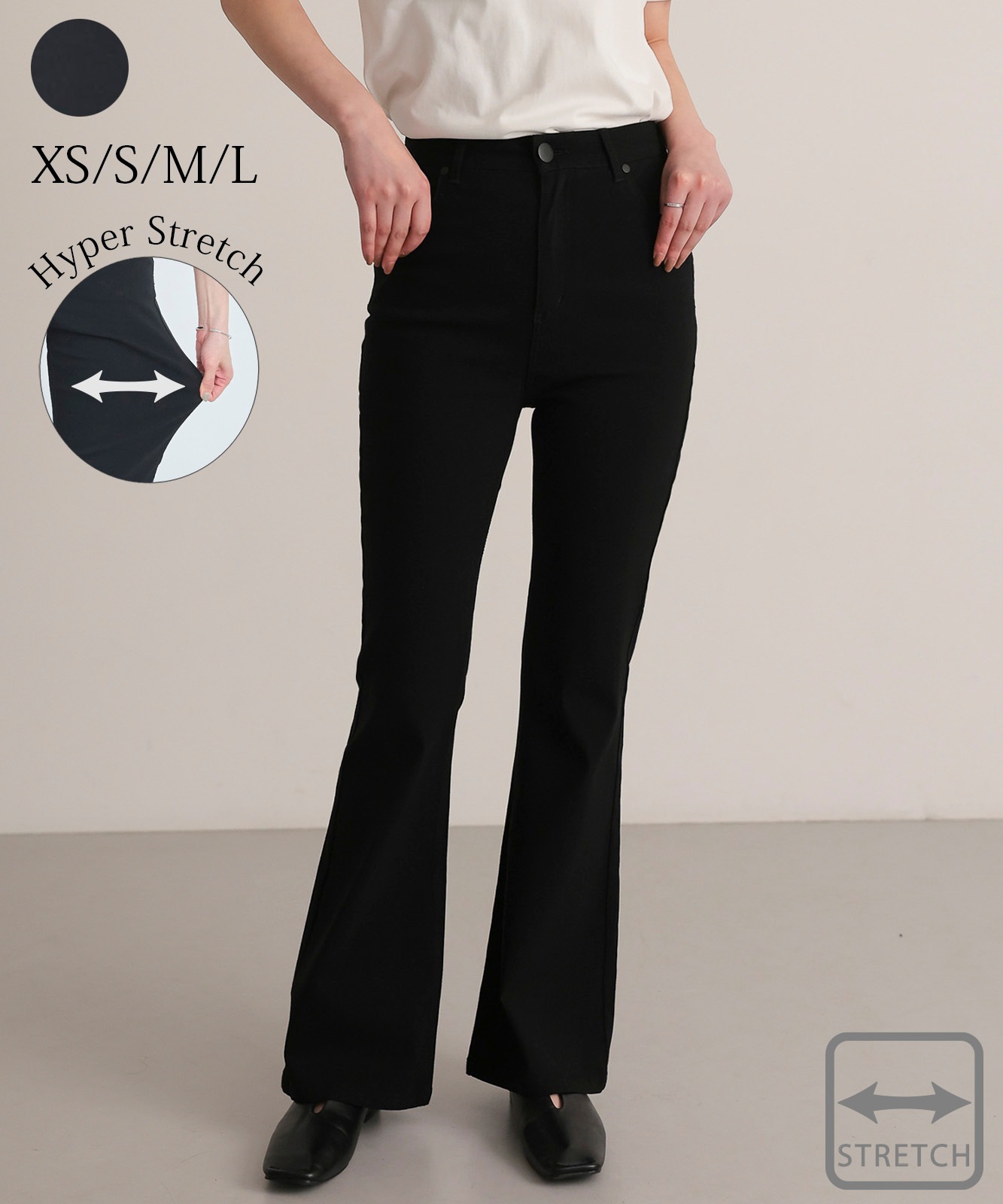 【attiree】ハイバーストレッチ ハイウエスト ブラック フレア パンツ