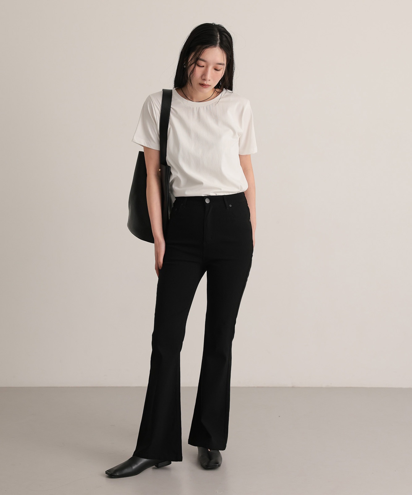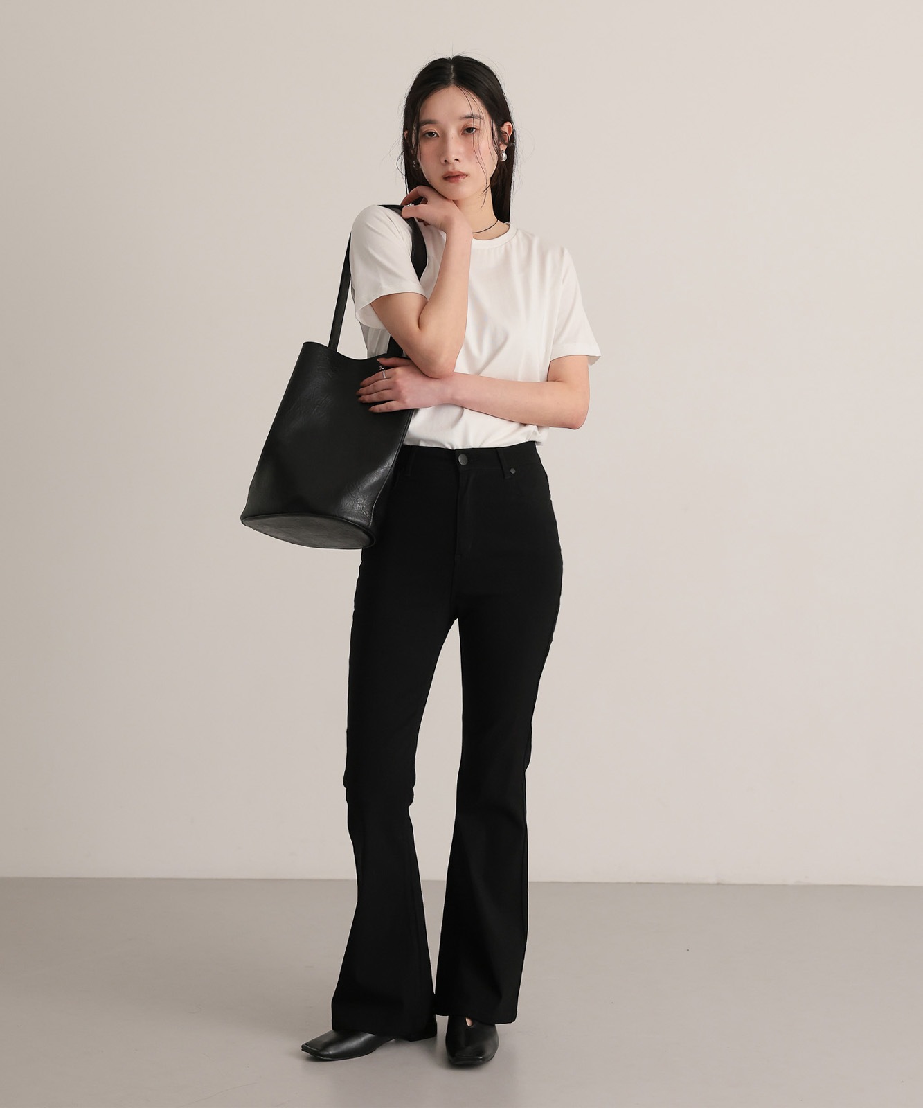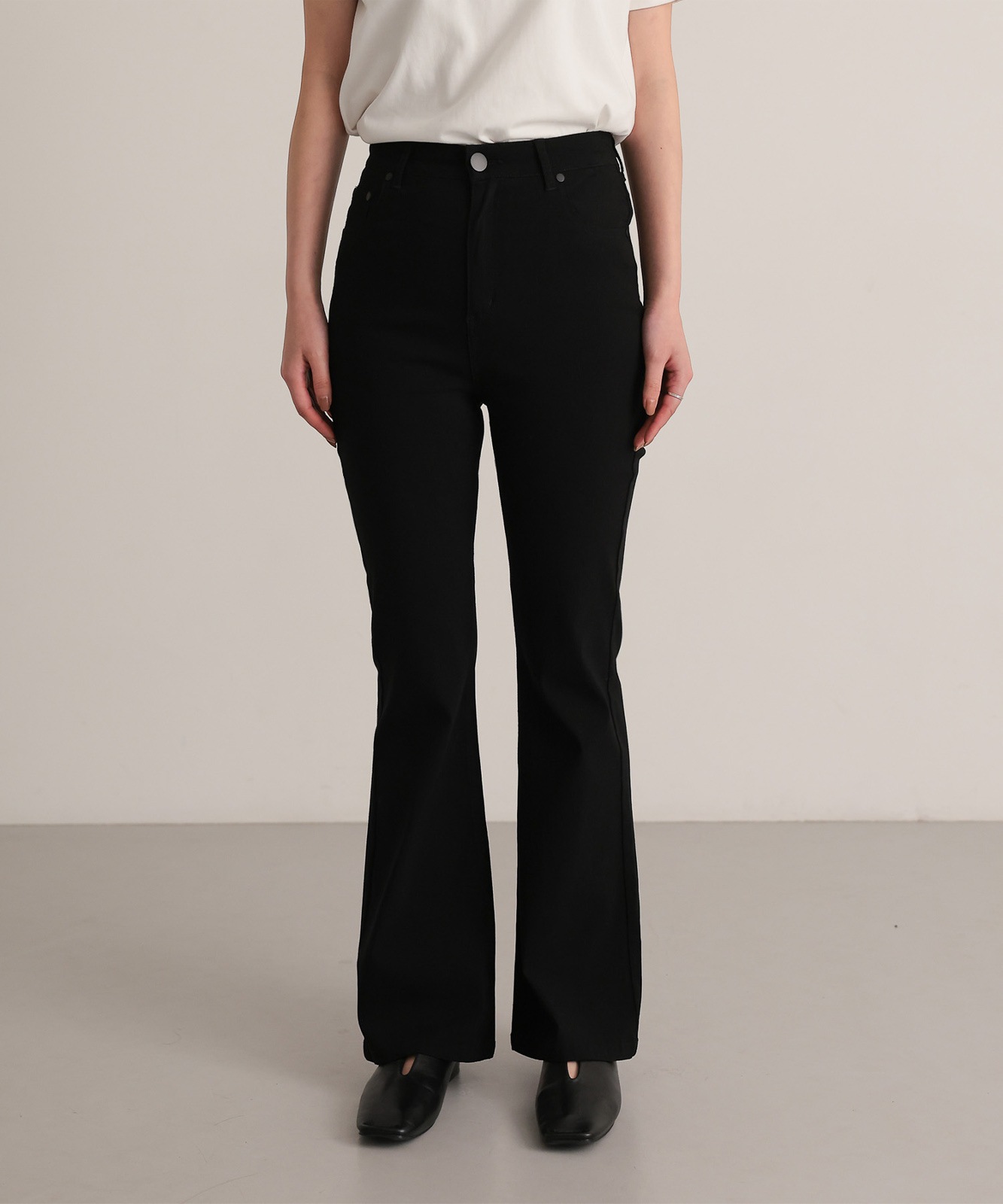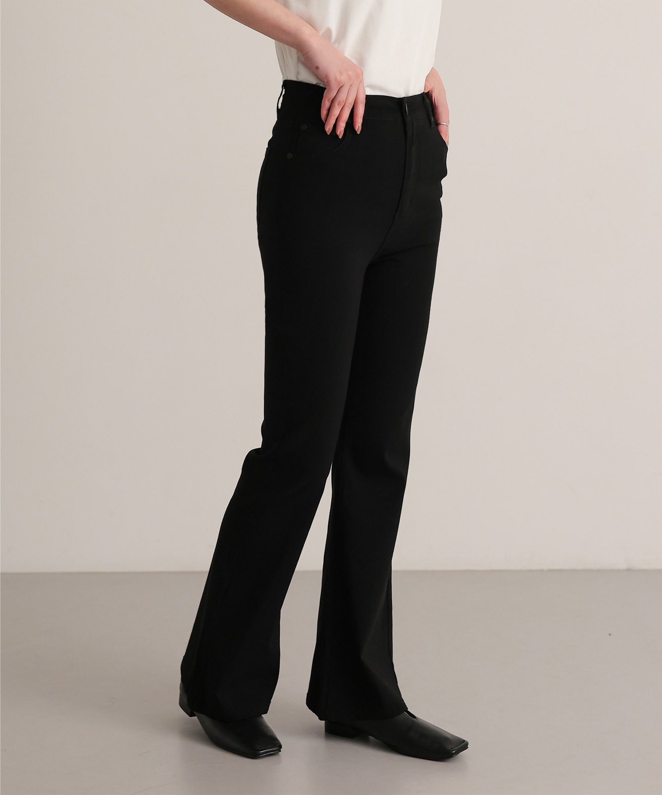 【attiree】ハイバーストレッチ ハイウエスト ブラック フレア パンツ