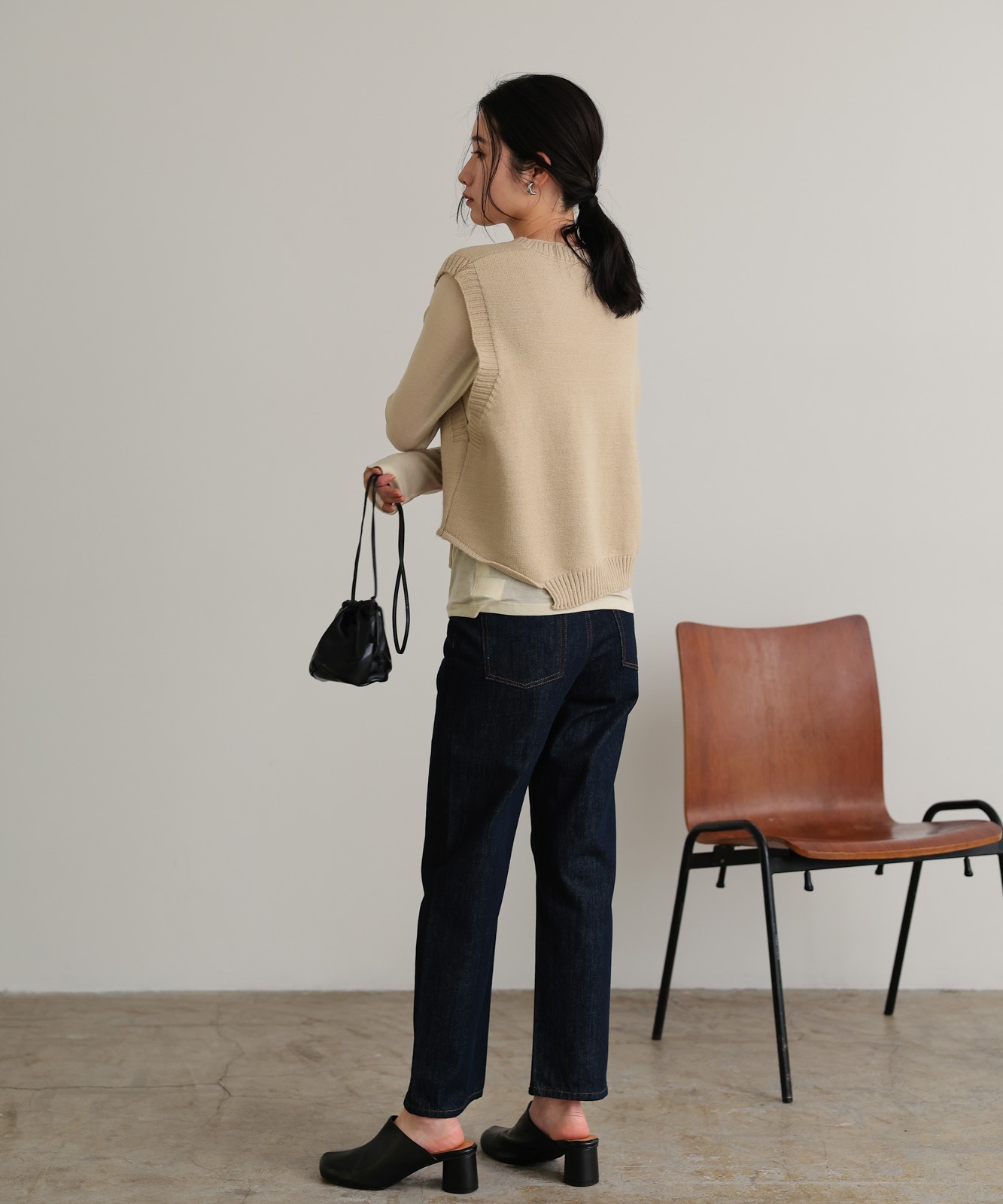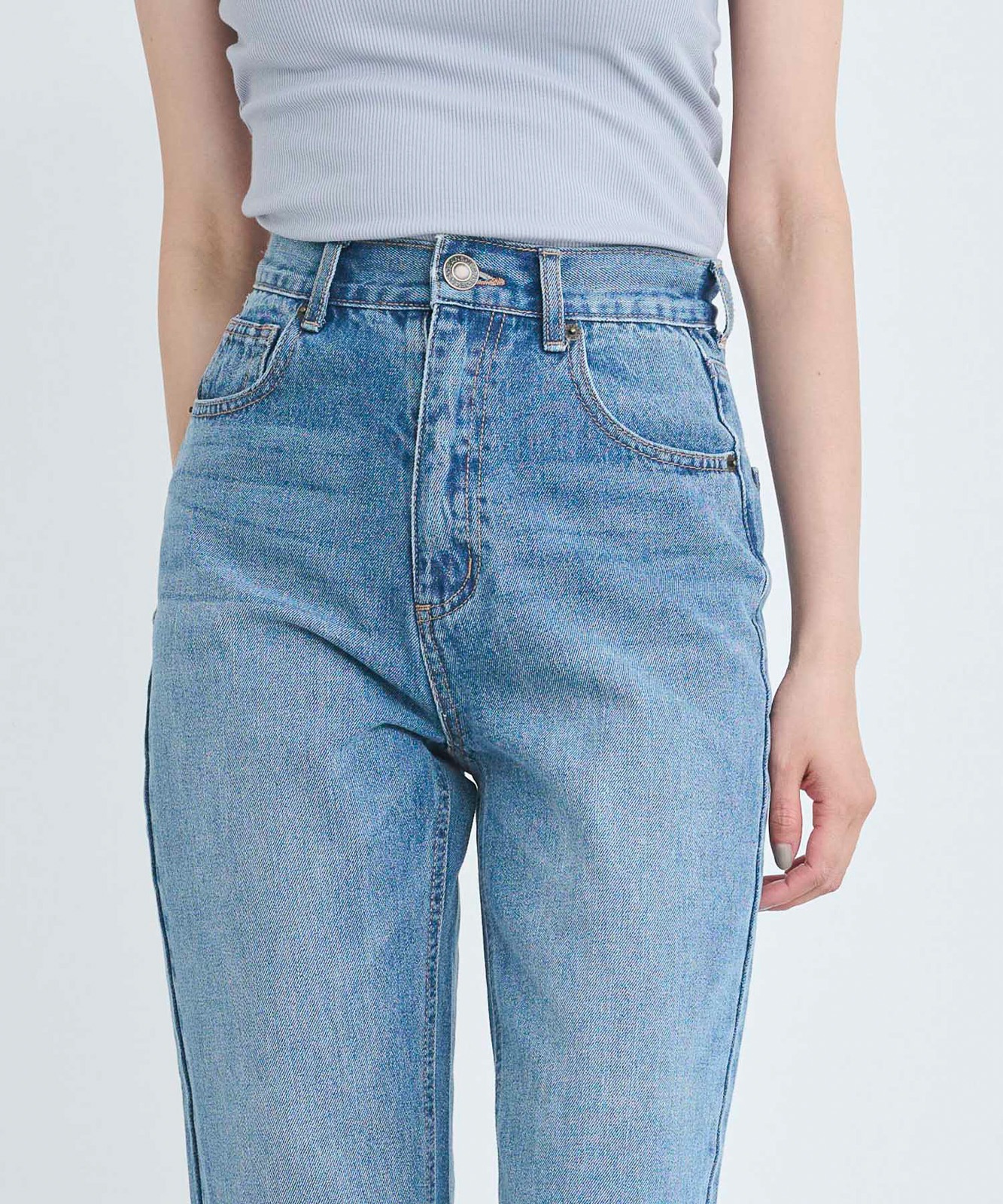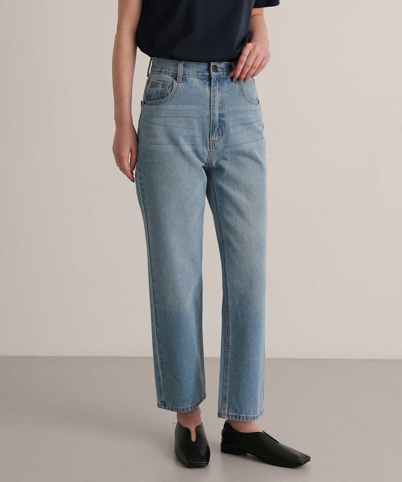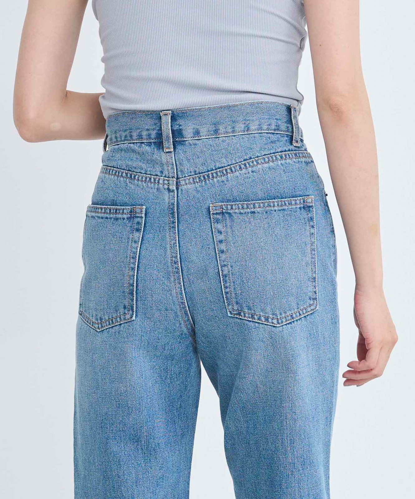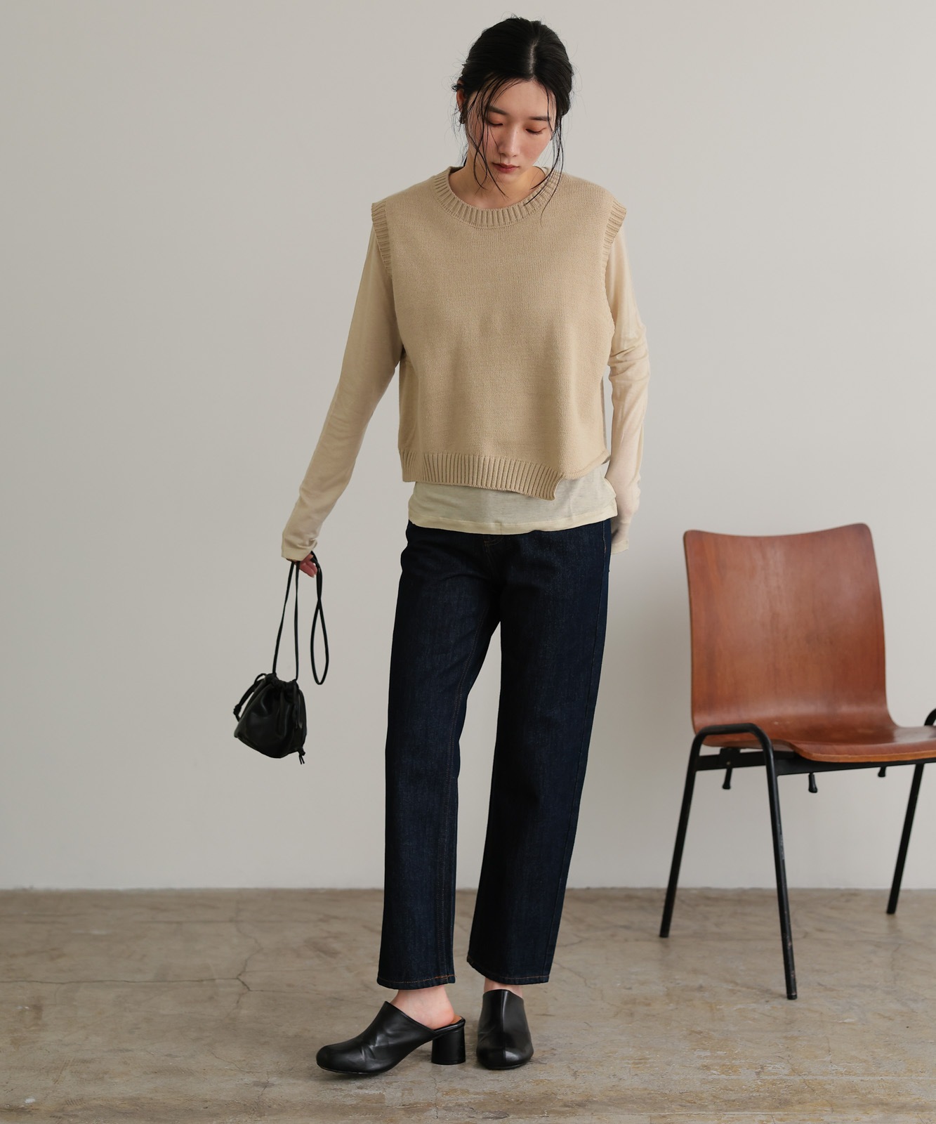 程よくゆとりのあるストレートデニムはスタイスアップ効果はもちろん、華奢見せ効果も◎