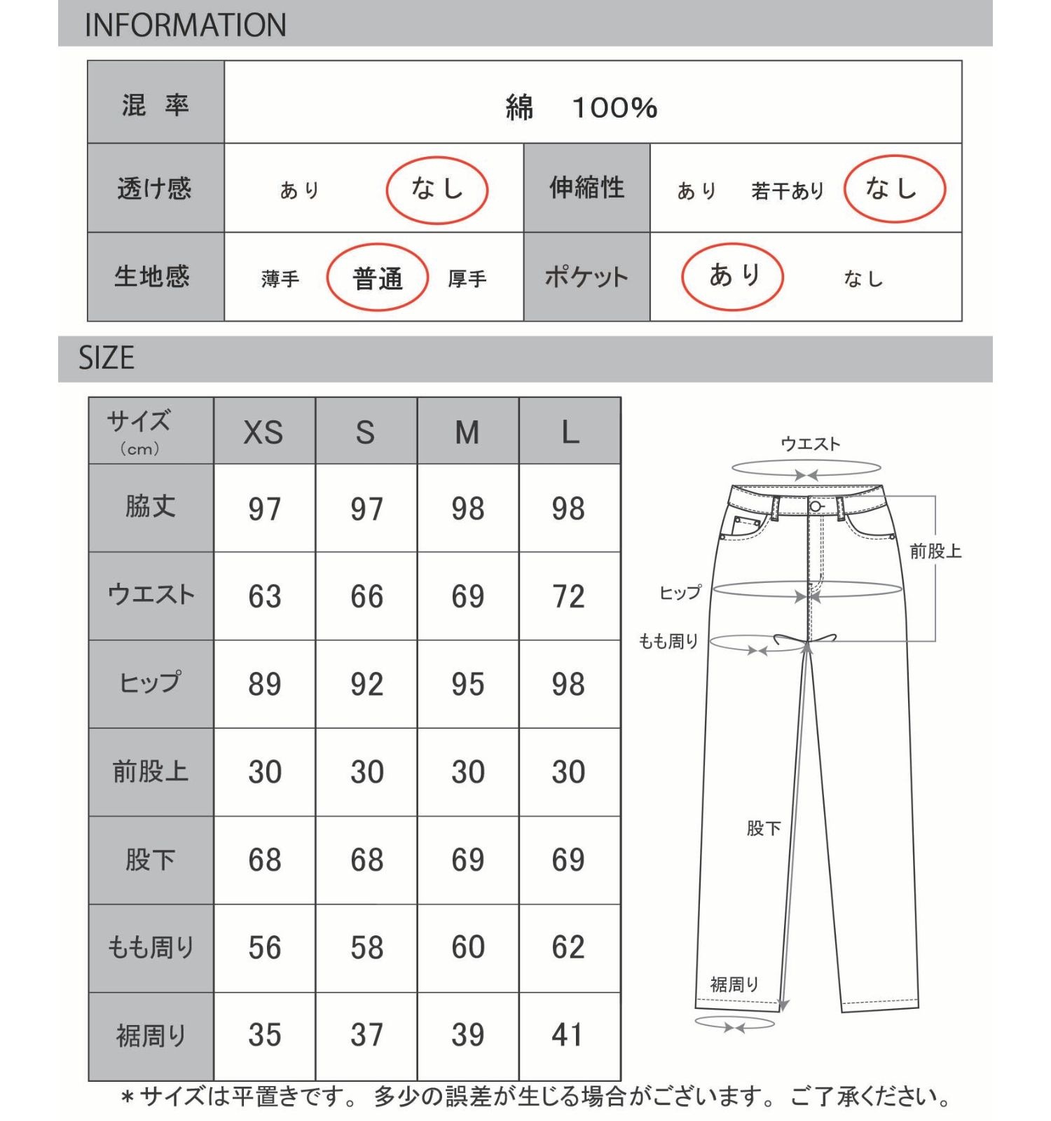生地の厚さ:普通