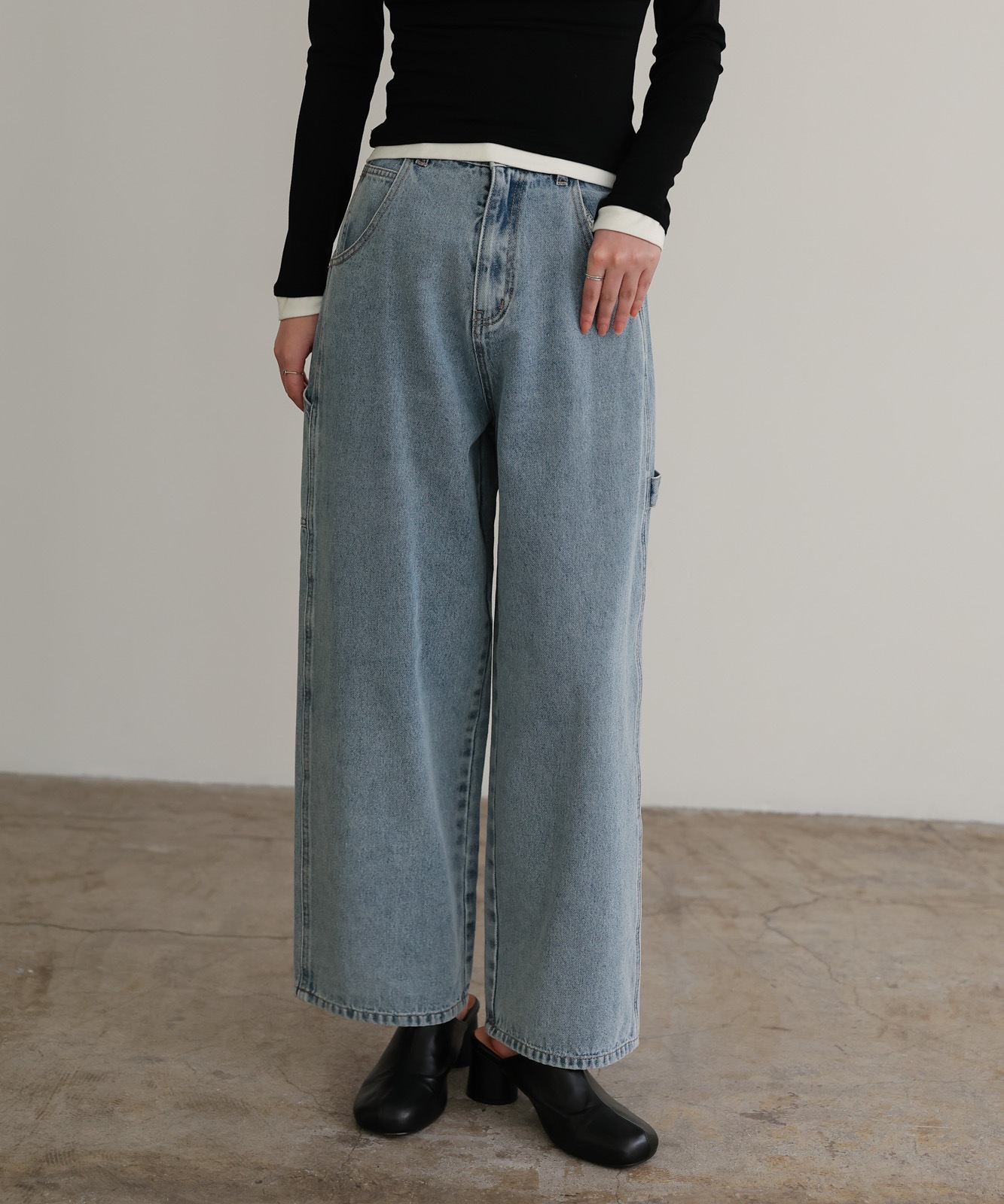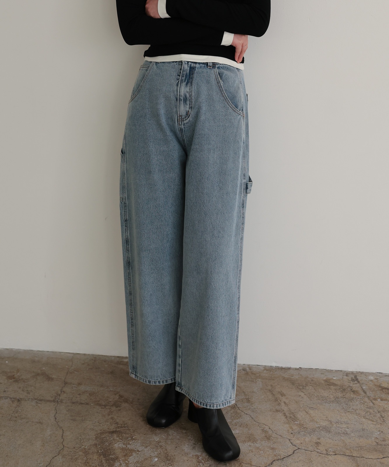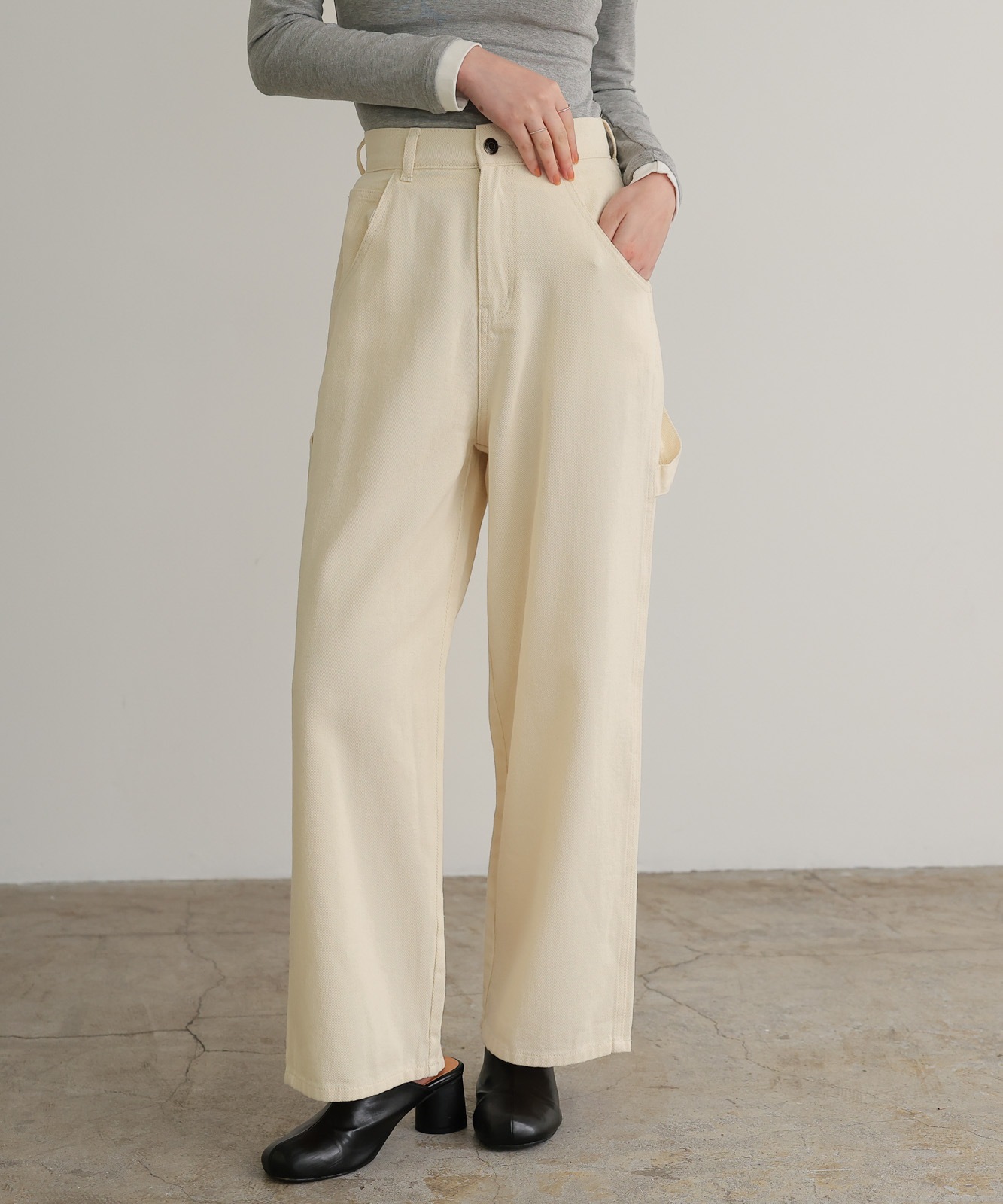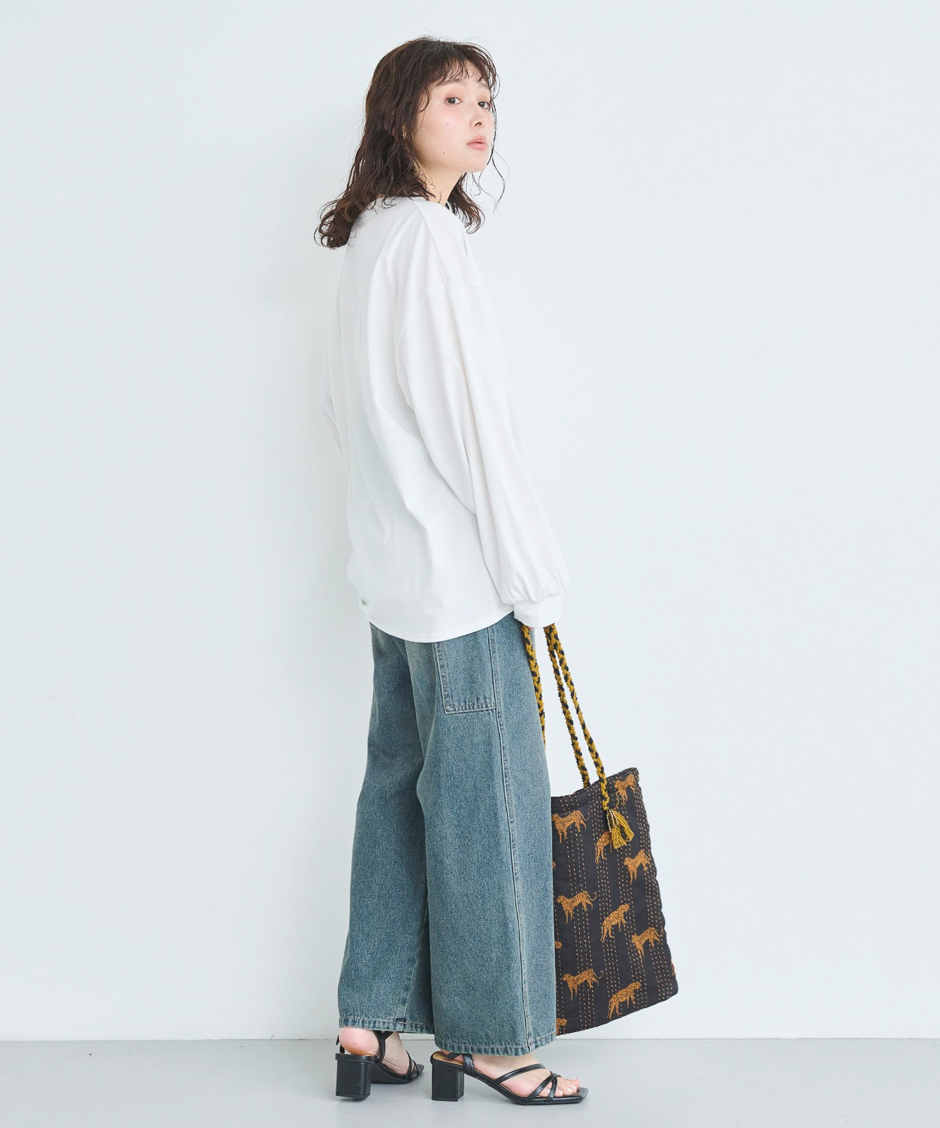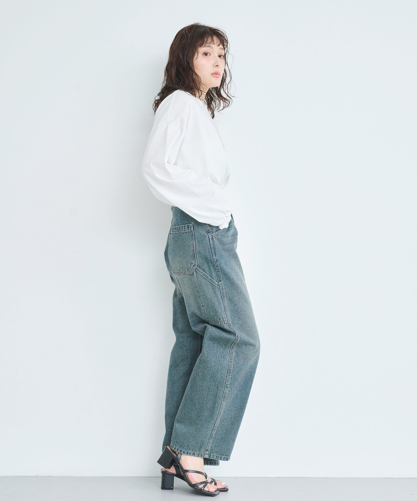 腰回りからストンと落ちるワイドシルエットが特徴です。