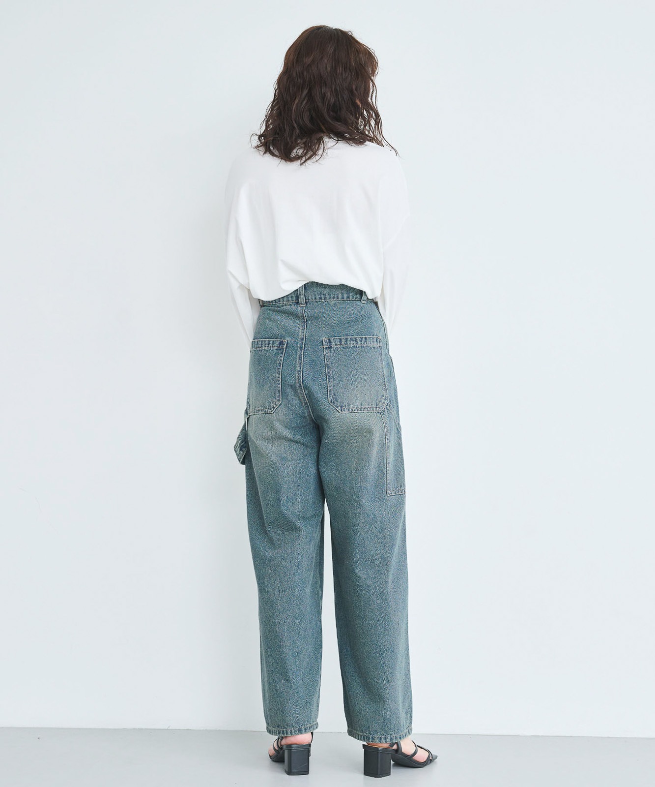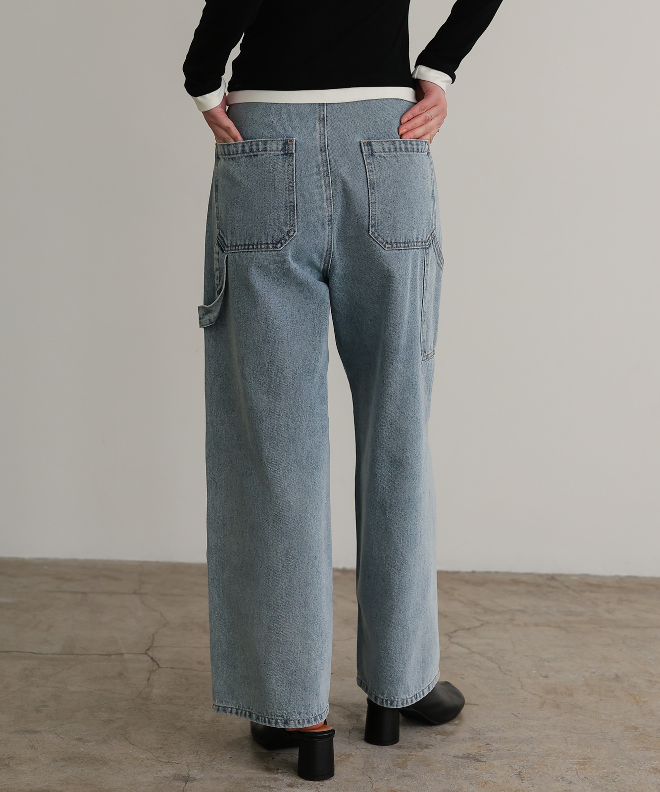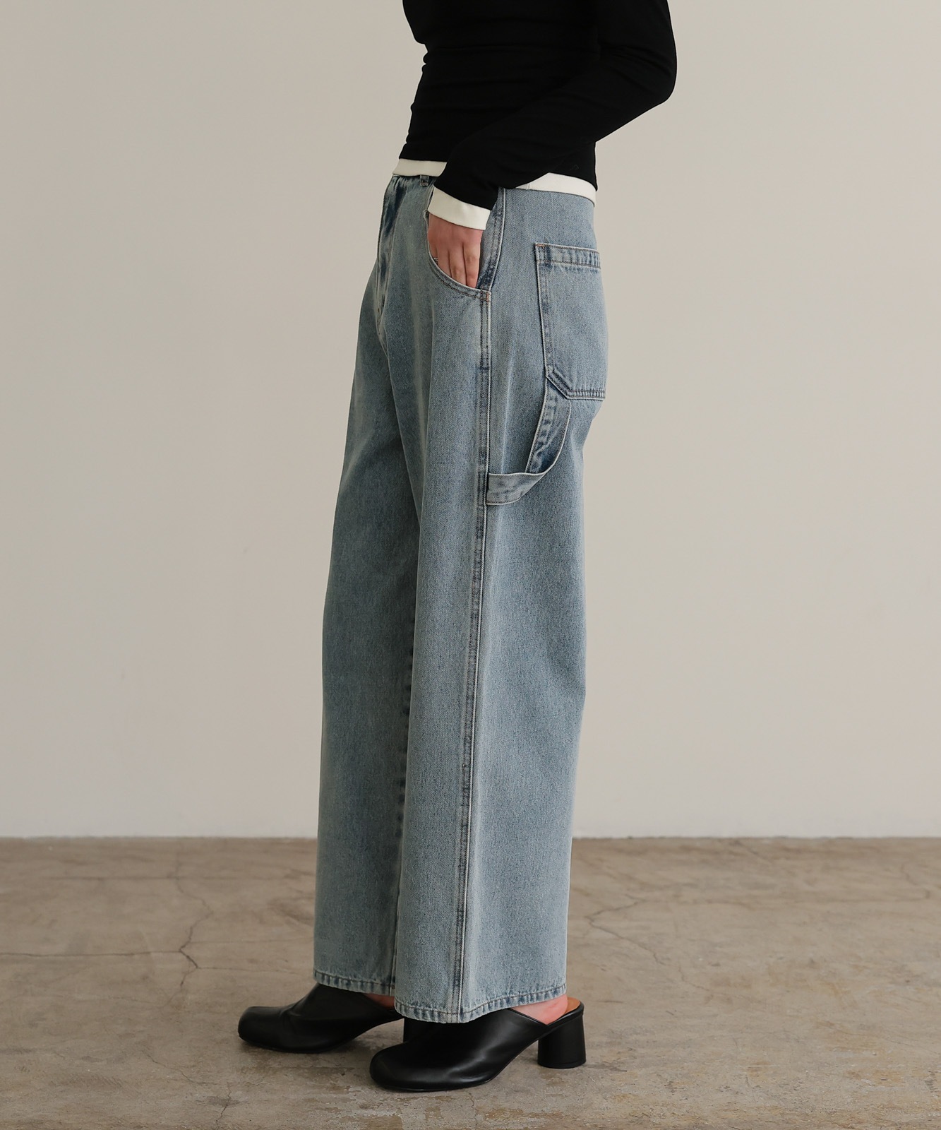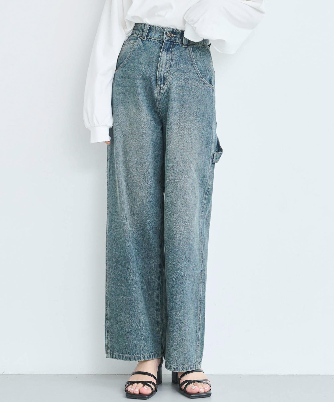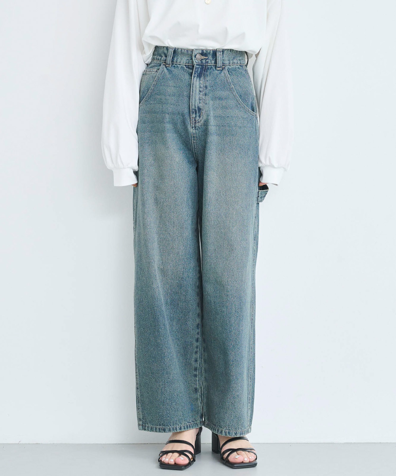 腰回りからストンと落ちるワイドシルエットが特徴です。