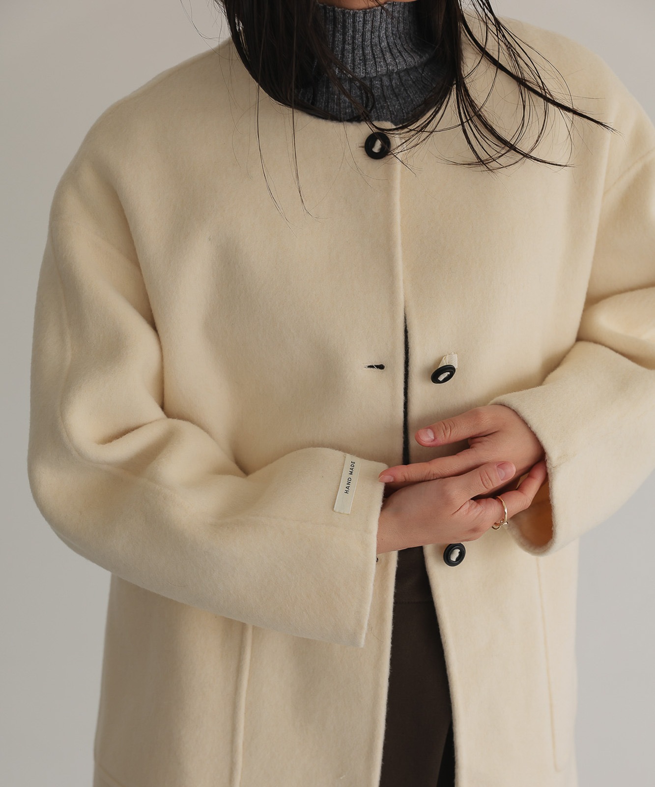 職人が手作業で仕上げたリバー仕様のウール混素材を使用しており、